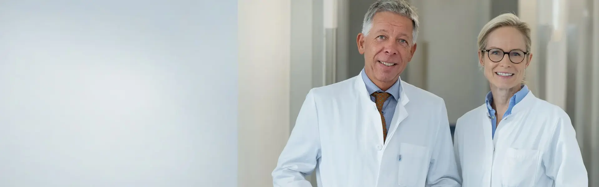 Dr. Siri Wiesmann und Prof. Dr. Ulrich Mittelkötter sind ausgewiesene Experten für endokrine Chirurgie. Bereits vor dem Wechsel in die Stadtklinik waren beide gemeinsame Leitung und die einzigen benannten und mehrfach re-zertifizierten Operateure in einem DGAV-zertifizierten Schilddrüsen- und Nebenschilddrüsenzentrum, sind seit 2015 extern qualitätsgeprüft und besitzen durch ihre Erfahrung und durch die sehr hohen Fallzahlen eine besondere Expertise – auch bei komplizierten Fällen.